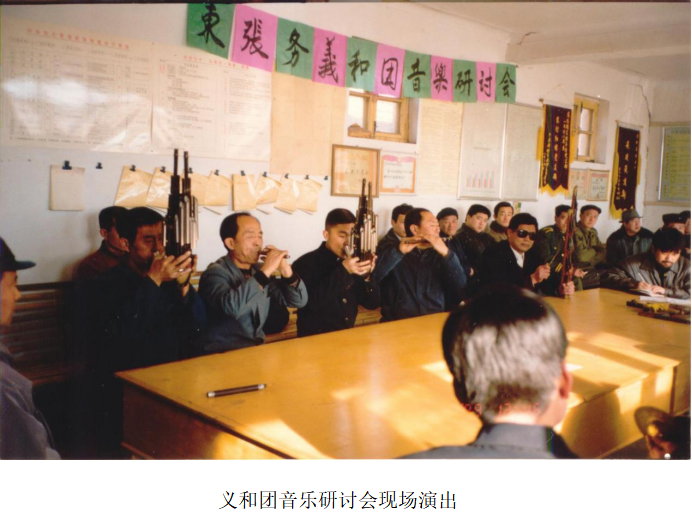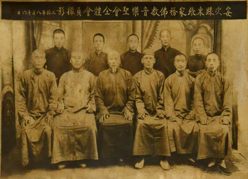 安次区东张务音乐会是清末由寺院传入民间,历属禅宗临济与曹洞派并传。收录的佛教曲目比较丰富,其中以《三皈赞》《普庵咒》《往生咒》等佛教名曲为主导。公元1900年随着义和团运动的发展,东张务村设立了坛口,村内的佛教音乐会也参与其中,并起到了积极的作用。音乐会的乐师们还创作了一些符合当时历史特征的乐曲,如《上马台》《鹅浪子》《扑蚂蚱》《哭黄天》等,起到了配合、推动义和团运动发展的作用。特别具有历史意义的是音乐会的乐师们以音乐为无形的武器,演奏着音乐参加了义和团廊坊大捷——落垡阻击战。以古音乐为军乐来抗击侵略者,谱写了一曲中国农民自发组织用血肉之躯捍卫民族尊严抗击外来侵略的慷慨悲歌。