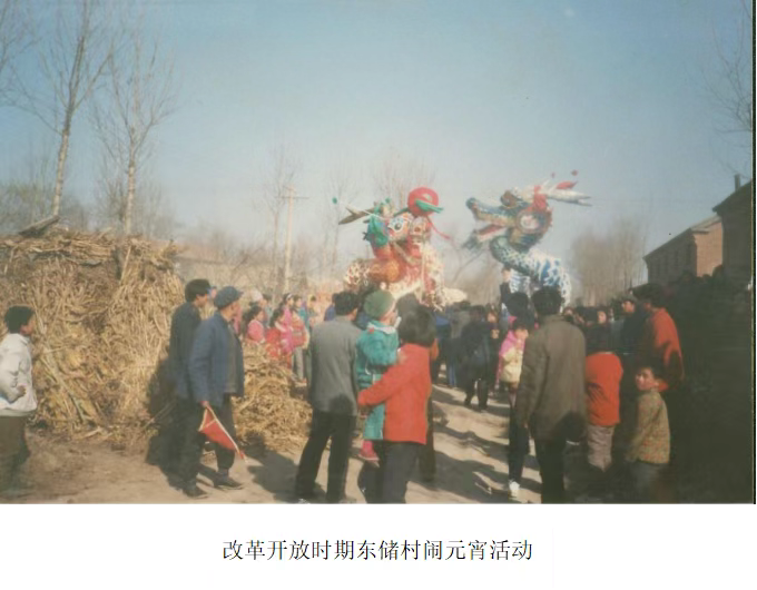 东储双龙会舞龙队由30余人组成。舞龙不仅要有技巧,且运动强度大,队员多为年轻体壮的青壮年。还要分为两至三班轮换,九节龙九人,另加舞龙珠一人。引龙者手举龙珠,龙跟着龙珠动作,上下起伏,呈"S"形滚动,还有各种结花、解花的变化,或腾跃、或滚动,或盘起、或穿插,不断展示扭、挥、仰、俯、跪、跳、摇等多种姿势。其套路有打场子、二龙戏珠、龙摆尾、单钻龙尾、双钻龙尾、蹭龙搭尾、龙搭头、懒龙翻身、大小圈、刮旋风、横搭龙、别花栅栏、扫堂腿、金龙盘玉柱、盘龙、穿龙、单地扫堂腿、双打扫堂腿、跳龙、扫场子等。舞龙时配以民族打击乐,由《瞎子放驴》《窦娥》等10余首曲目组成。
